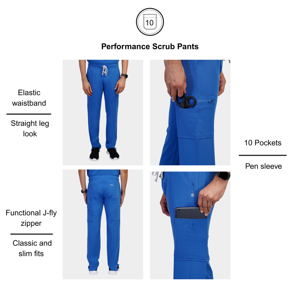 The Tobi Performance Scrub Pants provide lasting ease and comfort. Featuring antimicrobial protection, elastic waistbands and adjustable drawcords these scrubs for men move smoothly through the longest shifts. These straight-leg pants with ten pockets keep everything in reach. They are designed for professionals who require scrub pants that are dependable, functional, and ready to perform every day.