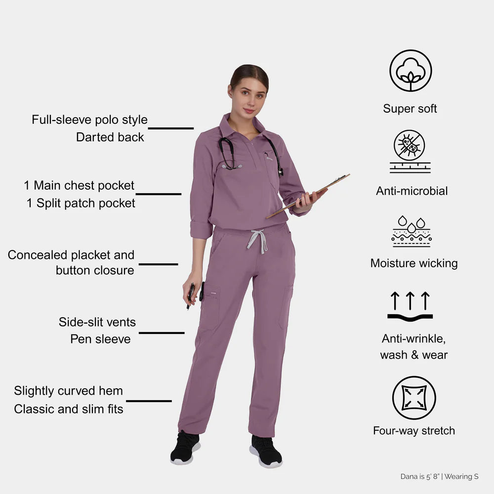 Charlotte Full-Sleeve Polo Scrub Top™